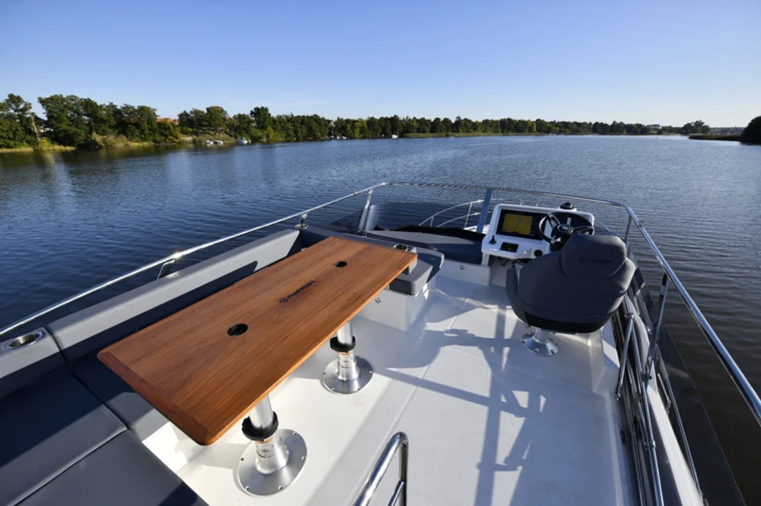 Grazie al design ergonomico e alla tecnologia avanzata, il Monaco consente una conduzione agevole anche in solitaria: la porta del comandante, a centro barca, offre accesso diretto alla bitta centrale e facilita le manovre di ormeggio, mentre il sistema di manovra con joystick garantisce controllo e sicurezza sia da soli sia con un equipaggio meno esperto; alle basse velocità il joystick assicura una gestione precisa e, grazie al sistema Skyhook di Mercury Marine, permette di mantenere la posizione come un’ancora virtuale, utile per sistemare parabordi e cime.