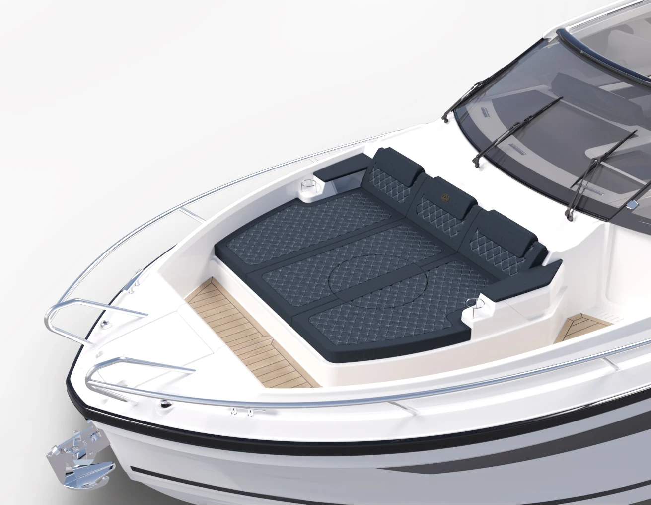 Accedi al prendisole di prua tramite il passaggio laterale sul lato sinistro del Sorrento. Con corrimani di sicurezza su entrambi i lati, quest’area offre uno spazio ideale per vivere l’aria aperta e rilassarsi all’ancora. Il generoso baglio del Sorrento consente di creare un’ampia area conviviale, in grado di ospitare comodamente 2–3 adulti. Il prendisole è rifinito con tessuti di alta qualità, per un comfort superiore.