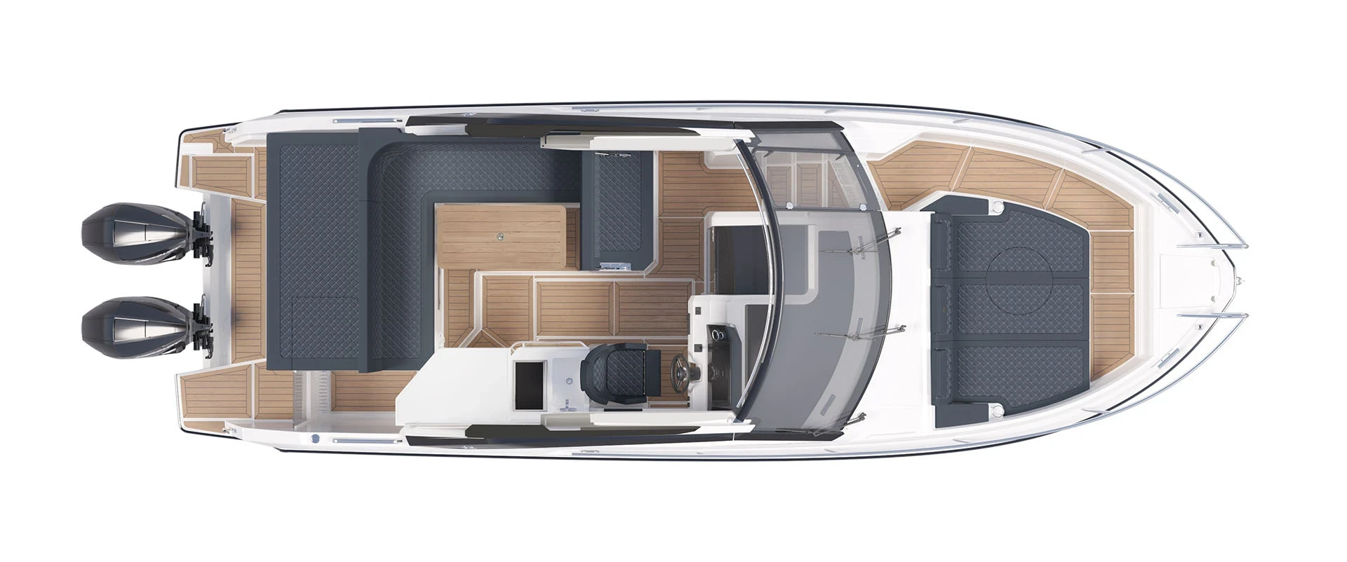 Il cockpit del Sorrento è progettato per risultare luminoso, arioso e spazioso, grazie alle ampie superfici vetrate della timoneria. Il design del tetto panoramico amplifica ulteriormente questa sensazione. Aprendo il tetto, luce naturale e aria fresca invadono la postazione di guida e le aree sociali sul ponte, creando una perfetta continuità tra esterni e spazi protetti, per un’esperienza “outside-in”.