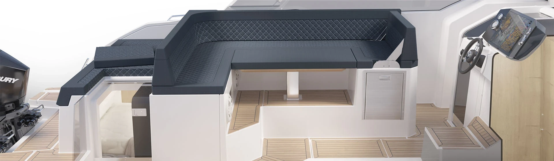 Prolunga la stagione nautica e resta protetto anche con condizioni meteo avverse grazie al pratico tendalino di poppa del Sorrento. A differenza di molte imbarcazioni, montare o riporre la capote è semplice e veloce. Il moderno design del Sorrento integra l’innovativo sistema Side Pillar Canopy storage, alloggiato nel montante laterale dell’hardtop, che consente di riporre il telo in modo ordinato e senza complicazioni.