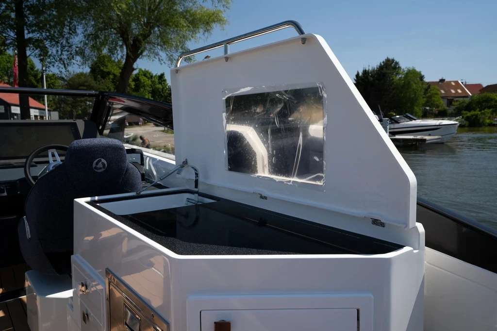Lunga 9,1 metri, nasce come day cruiser ma offre spazio e soluzioni ideali anche per viaggi più lunghi. Con motorizzazioni fino a 800 HP garantisce performance di alto livello, mentre gli interni accolgono un letto matrimoniale, ampi spazi di stivaggio e un bagno separato con doccia. Un equilibrio riuscito tra stile, funzionalità e potenza che le è valso la candidatura ai Best of Boats Awards 2024.